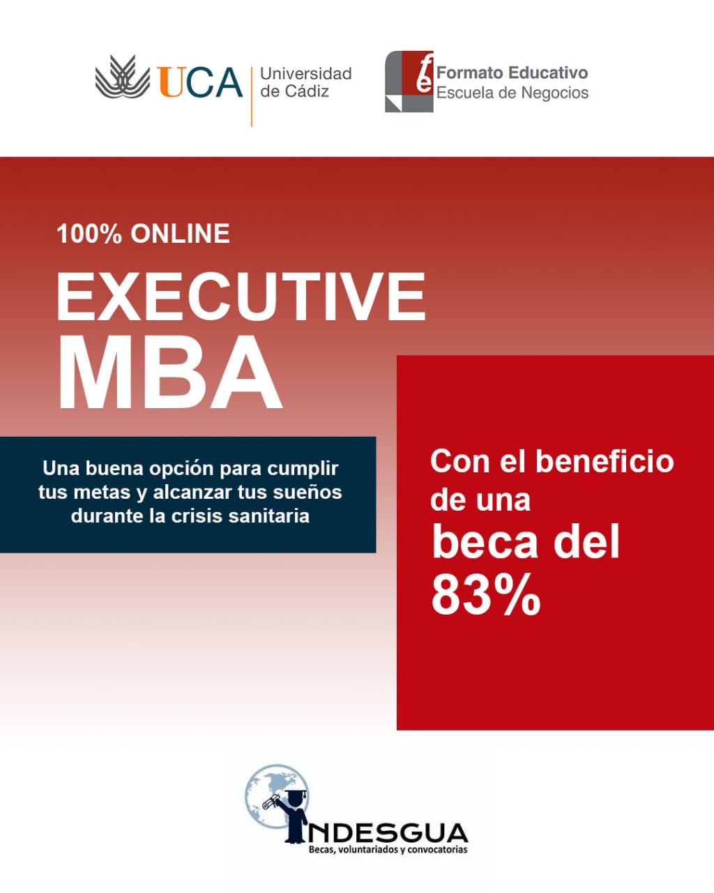 PROPÓSITO DE LA PRESENTE BECA: Convertir la actual emergencia sanitaria en una oportunidad para obtener un Executive MBA en modo compatible con la actividad personal y con un coste muy asequible.