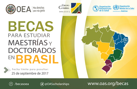 La séptima edición consecutiva de las Becas Brasil PAEC OEA-GCUB ofrece 670 becas académicas a ciudadanos sobresalientes de los Estados Miembros de la OEA para realizar estudios de maestría y de doctorado en universidades brasileñas. Este Programa de Alianzas para la Educación y la Capacitación (PAEC) entre la Organización de los Estados Americanos (OEA) y el Grupo Coimbra de Universidades Brasileñas (GCUB), con apoyo de la División de Temas Educativos del Ministerio de Relaciones Exteriores del Brasil y la Organización Panamericana de la Salud (OPS/OMS), se encuentra abierto hasta el 25 de septiembre de 2017.