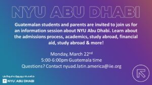 En la sesión se dará amplia información sobre los procesos de admisión, la oferta académica, las becas ofrecidas y mucho más sobre NYUAD.