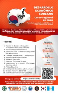 El  KDI School of Public Policy and Management (KDI School) lanza su primer curso en línea sobre  Desarrollo Económico Coreano  dirigido a servidores públicos y líderes del sector privado, académicos y profesionales de Centroamérica y República Dominicana, con interés de aprender sobre el modelo de desarrollo económico coreano.