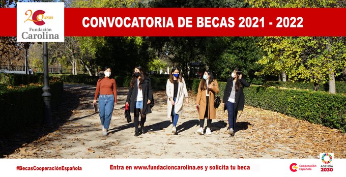 - Fundación Carolina abre su convocatoria de becas para el curso 2021 – 2022 en el marco de las “Becas de Cooperación Española”, que aúna las becas de Fundación Carolina y las de la Agencia Española de Cooperación Internacional y Desarrollo (AECID).